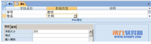 4、同樣的方法我們建立“姓名字段”,并設置其數據類型為 文本。