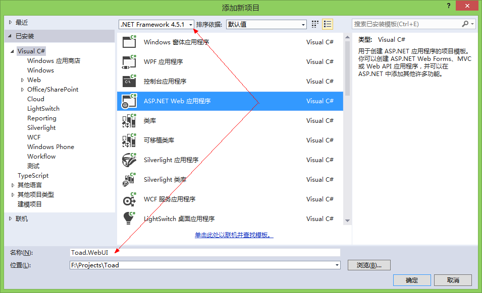 3.添加一個ASP.MVC 名稱為XXX.WebUI