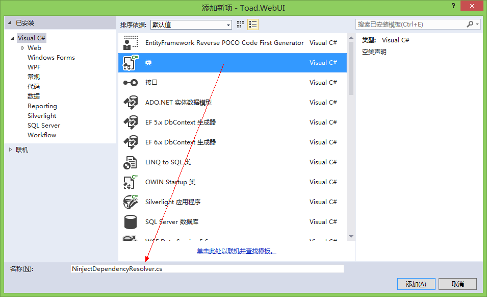 8.創建文件夾Infrastructure ,設置NinjectDependencyResolver