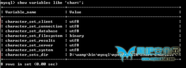 (2)檢查mysql數據庫儲存時默認使用的字符集