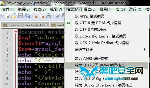 1、使用notepad++打開該網頁文件,然后在“格式”--“轉為UTF-8無BOM編碼格式”