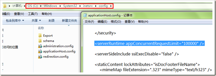 2. 調(diào)整IIS 7的appConcurrentRequestLimit設(shè)置