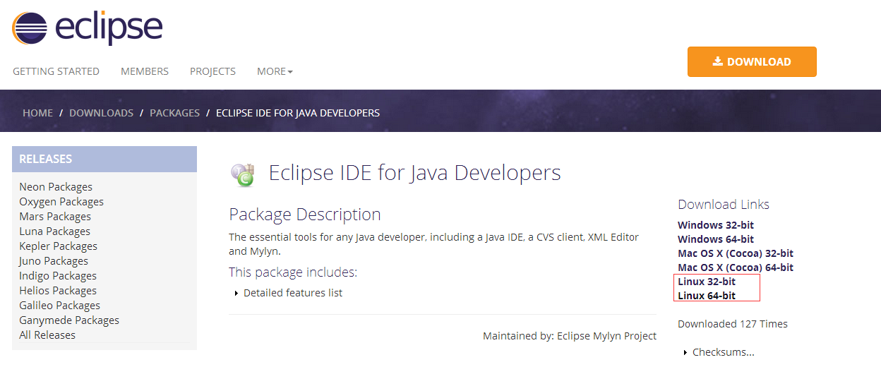 ②eclipse官網http://www.eclipse.org/downloads/packages/eclipse-ide-java-developers/heliossr1/下載Linux上使用的eclipse