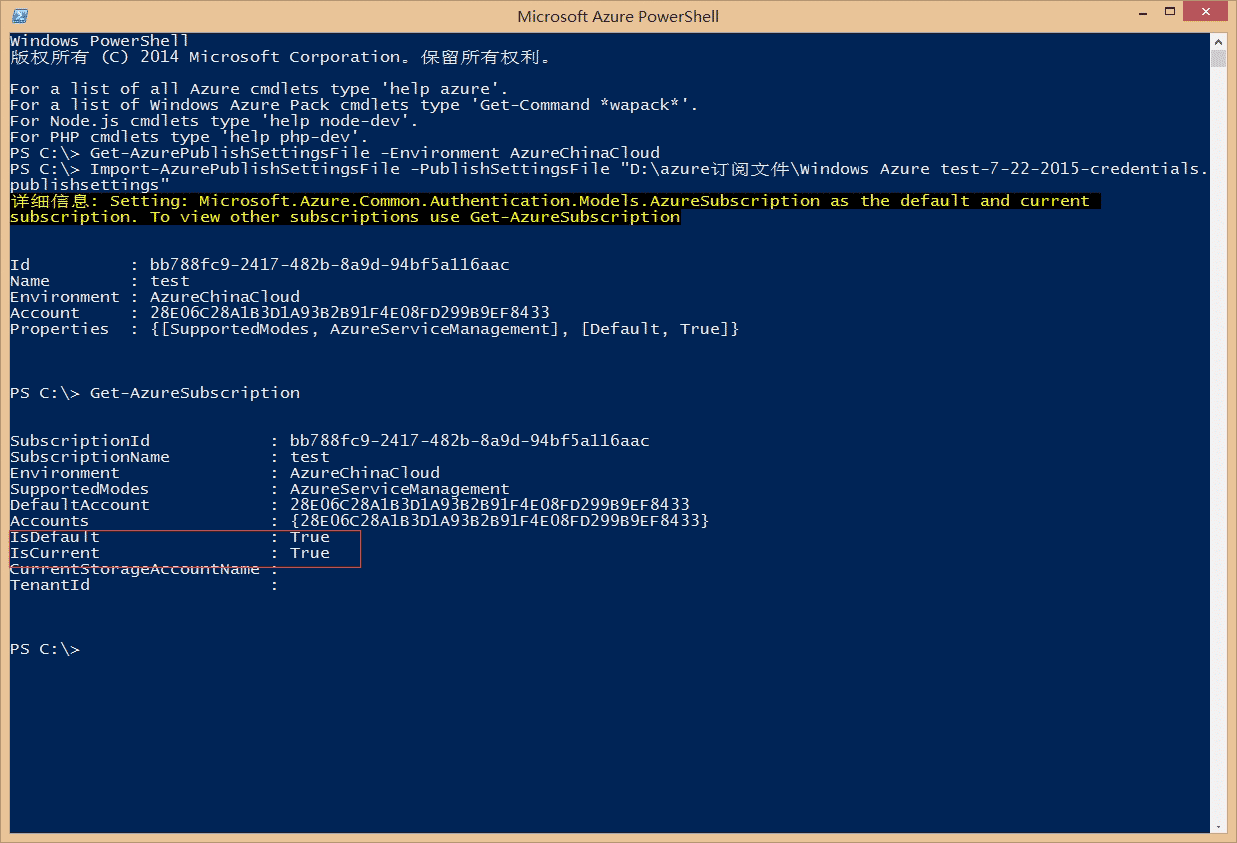6.目前只有一個Azure賬戶,為True狀態,如圖: