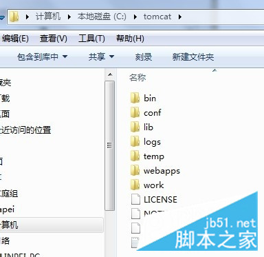 解壓下載文件包,不習慣版本號文件夾,在這里我修改默認文件夾名apache-tomcat-8.0.0-RC5-windows-x64為tomcat。請同學們根據自己的意愿選擇。