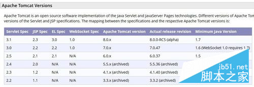 Tomcat下載,你需要下載與JDK相配的版本,官方首頁就有如下圖所示,在這里與最新版JDK相對應的就是Tomcat 8.0了。下載下來的文件名是apache-tomcat-8.0.0-RC5-windows-x64.exe