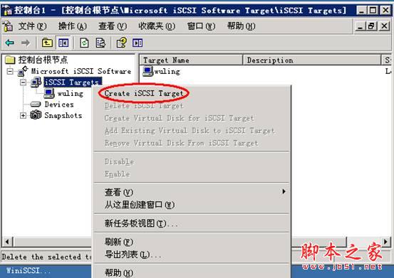 測試操作系統版本:windows 2003 server sp2,軟件:MS_iSCSI_Target配置步驟: