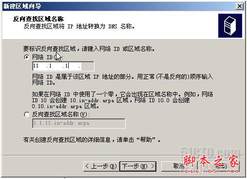 11 在【網(wǎng)絡(luò)ID】處輸入“11.1.1.”,單擊【下一步】