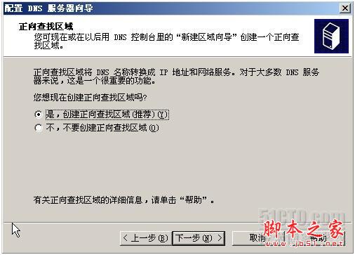 4 選擇【是,創(chuàng)建正向查找區(qū)域(推薦)(Y)】,單擊【下一步】