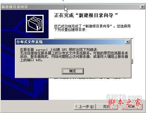 8 點擊【完成】如果你出現下面情況,而無法完成,則可能是DFS服務“Distributed File System”這個服務沒有開啟。把它啟動就可以了。