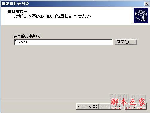 6 (如果系統查找到沒有test這個共享文件夾,就會進行下個畫面)下一步----點擊【瀏覽】新建個test文件