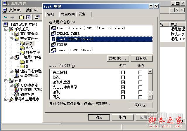 12還要在安全選項卡中添加Guest用戶并配置權限