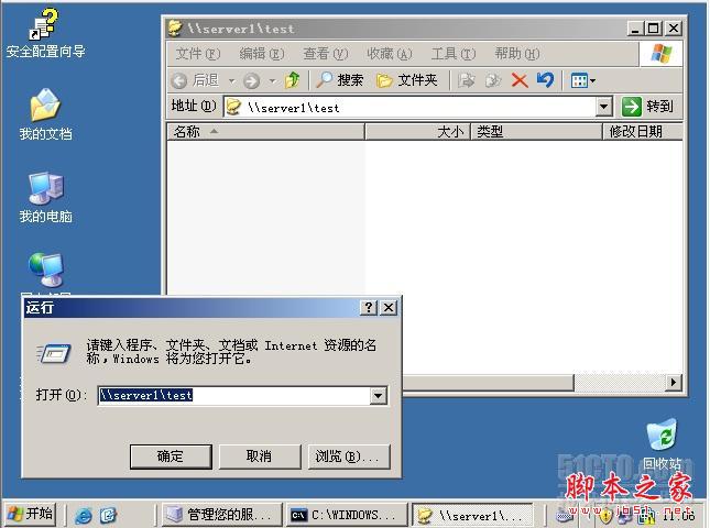 13 在另一臺客戶機2003(只是計算機名server2,它不作為服務器,在該實驗只做客戶端)中,運行打開//server1/test,可以進入到該文件夾。