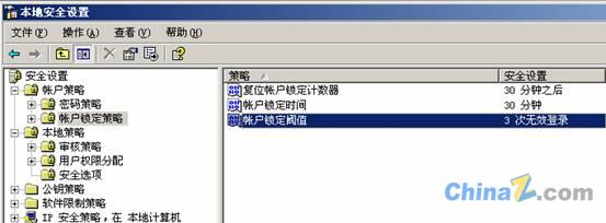 7、配置帳戶鎖定策略(在運(yùn)行中輸入gpedit.msc回車,打開(kāi)組策略編輯器,選擇計(jì)算機(jī)配置-Windows設(shè)置-安全設(shè)置-賬戶策略-賬戶鎖定策略,將賬戶設(shè)為“三次登陸無(wú)效”,“鎖定時(shí)間30分鐘”,“復(fù)位鎖定計(jì)數(shù)設(shè)為30分鐘”。)