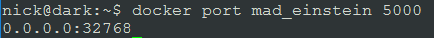 上圖中 mad_einstein 是容器的名字,32768 是容器的 5000 端口映射到主機上的端口。