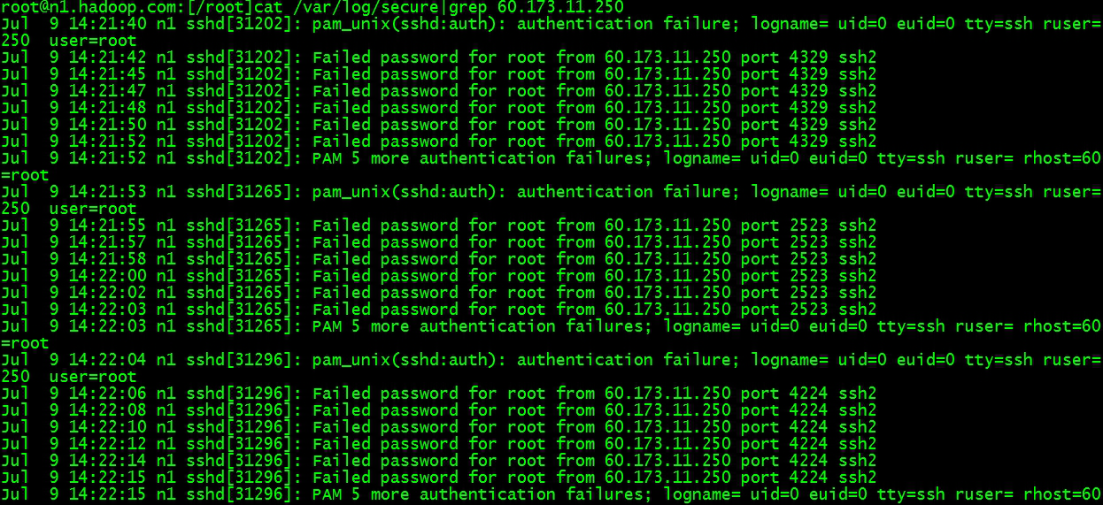 查看/var/log/secure文件尋找可疑IP登陸次數