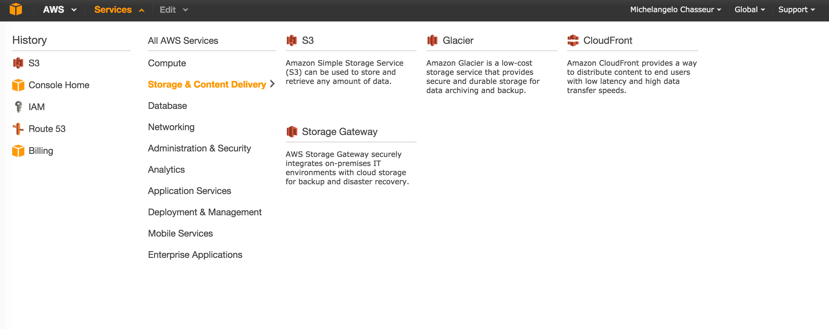 登錄到我們的AWS賬號(hào)(如果沒有,就申請(qǐng)一個(gè)http://aws.amazon.com/),在控制臺(tái)選擇S3(Simpole Storage Service)。