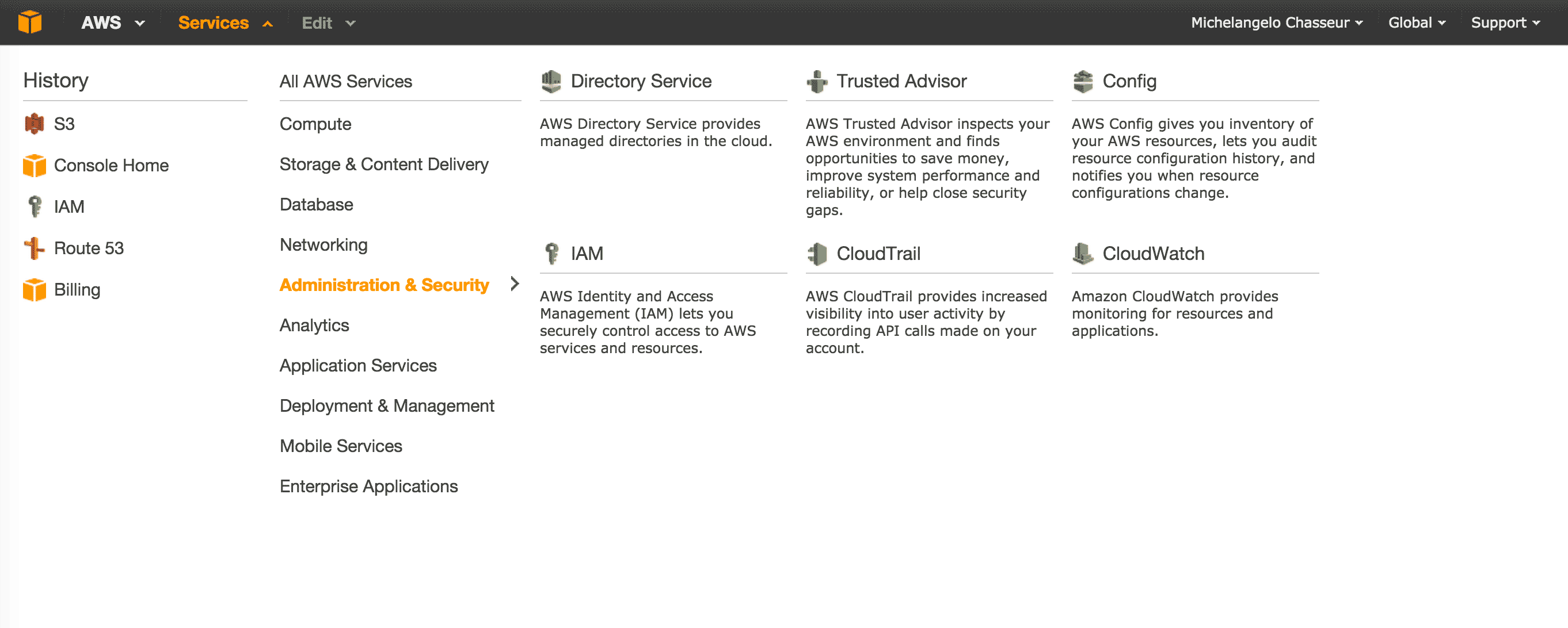我們現(xiàn)在將要?jiǎng)?chuàng)建一個(gè)新的用戶。退回到AWS控制臺(tái)然后選擇IAM(Identity & Access Management)。