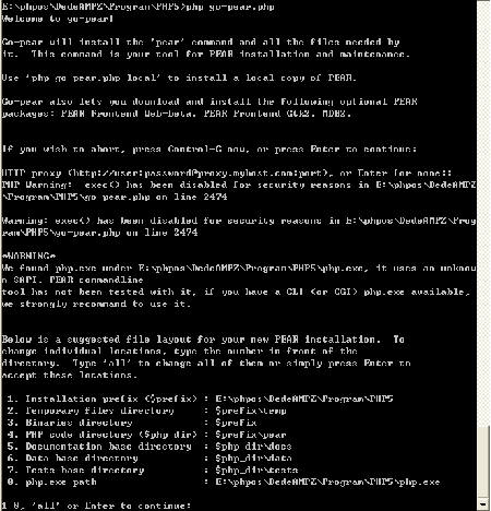 (安裝pear時,可以讓其使用默認值,一直回車完。)