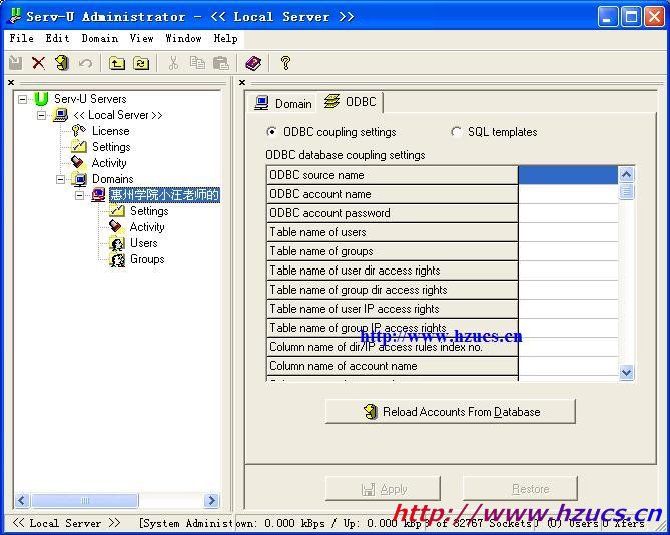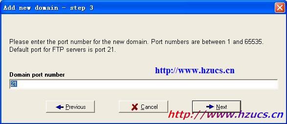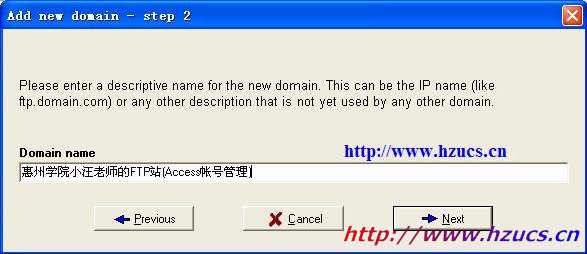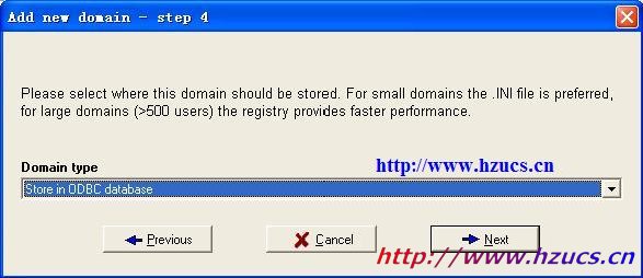 3.成功建立ODBC后,打開Serv-U軟件,建立FTP域.在步驟4時(shí)注意選擇Store in ODBC database