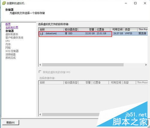進入“存儲器”界面,選擇虛擬機文件的目標存儲位置,如果有多個位置可以自由選擇,然后點擊“下一步”按鈕。
