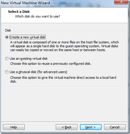 選擇虛擬硬盤類型,這里選擇創建一個,Next: