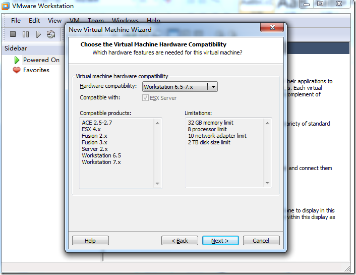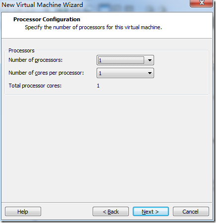 選擇給虛擬機分配的cpu核的數量,如果為虛擬機選擇的cpu數超過本機實際cpu數量,vmware會給出警告。Next: