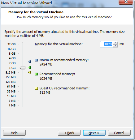 虛擬內存分配,一般選默認的1024MB就行,Next: