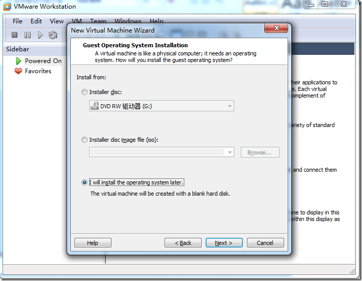 這里選擇第三項,以后安裝,方便進行配置。選擇I will install the operating system later,Next:
