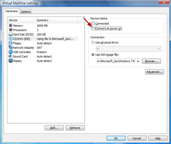 我們可在VM -> Settings (或Ctrl-D)中取消Connected和Connect at Power-On這兩個選中。如下圖: