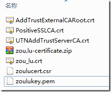 把所有文件全部上傳到一個(gè)特定的目錄,比如我是上傳到 /root/zoulu/ 這里,zoulukey.pem 和 zoulucert.csr 是自己在 VPS 生成的,剩下的都是證書簽發(fā)機(jī)構(gòu)頒發(fā)的。 一般情況下,直接用證書簽發(fā)機(jī)構(gòu)頒發(fā)的 crt 文件即可,比如 zou_lu.crt ,但是有很多證書簽發(fā)機(jī)構(gòu)默認(rèn)在 Firefox 中文版下是不會(huì)信任的,經(jīng)過仔細(xì)研究,終于發(fā)現(xiàn),原來得把證書簽發(fā)機(jī)構(gòu)辦法給你的 crt 文件也放入才行。 方法如下: 合并 PositiveSSLCA.crt (證書簽發(fā)機(jī)構(gòu)的 crt) 和 zou_lu.crt (自己域名的 crt)