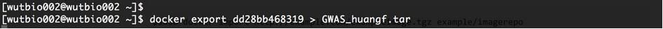 2、然后使用 docker export 命令將容器導出(這里以GWAS_HF容器為例)