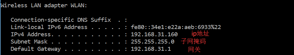 1. ipconfig 查看物理主機(jī)的ip地址(上外網(wǎng)用的那個(gè)網(wǎng)卡的ip地址)