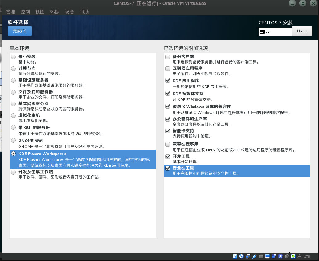 點擊軟件選擇,根據自己需要選擇安裝,如果不熟悉,就不要選擇,默認最小安裝,不過要安裝圖形界面的話,還是選擇一下GNOME或者KDE。