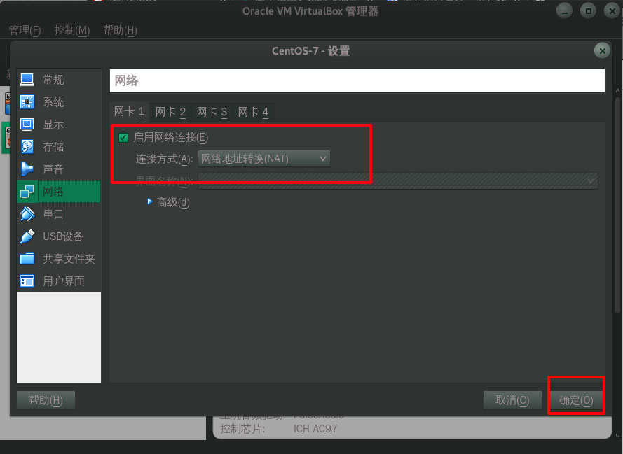 在網絡哪里,把網絡連接選為NAT,確定,現在可以啟動了。