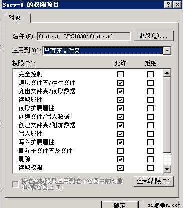 5.找到serv-u的安裝目錄(C:/Program Files/RhinoSoft.com/Serv-U)設置serv-u安裝目錄的權限
