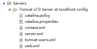 說明:本文提到的tomcat-users.xml,server.xml等文件,如果是在Eclipse中啟動tomcat,則這些文件在Eclipse中的Servers工程下對應的tomcat下,如圖: