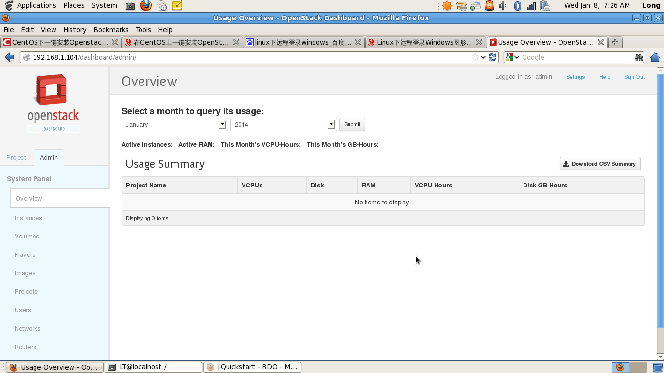 后續工作,可以添加實例,自行進行測試。參考網站:http://openstack.redhat.com/Running_an_instance
