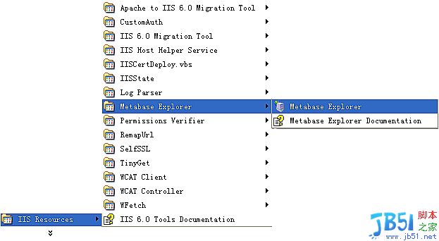 第二步: 依次打開:開始-程序菜單-IIS Resources-Metabase Explorer,運行Metabase Explorer。