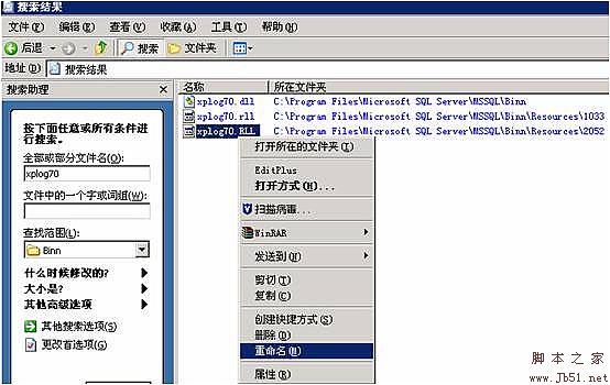 4.安裝好SQL后進入目錄搜索 xplog70 然后將找到的三個文件改名或者刪除.