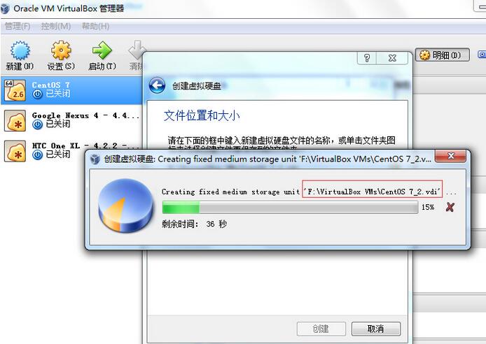 我們將虛擬硬盤創建在f盤的VirtualBox VMs目錄下: