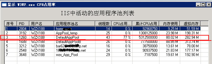 有一個應用程序池,cpu占用率長時間高達 70-80%,累計CPU站用時間也特別高