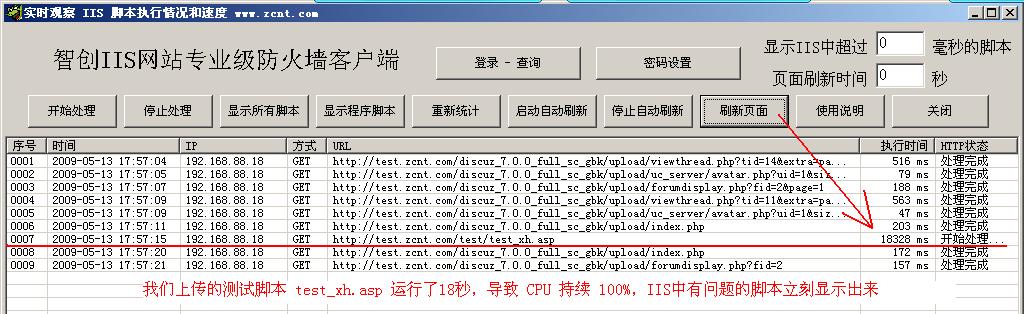我們上傳的一個 FOR 循環(huán) test_xh.asp 文件,立刻就顯示出來了,一般正常的ASP程序執(zhí)行時間不超過1秒時間.