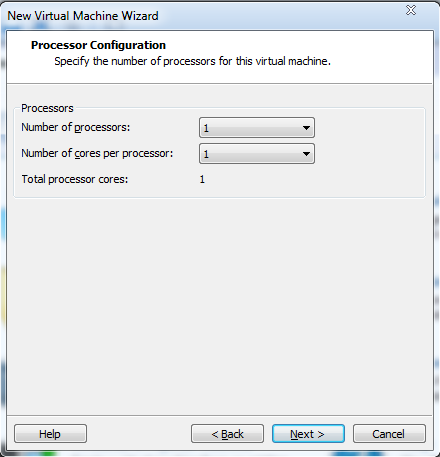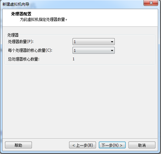 下一步是設置CPU,這里Processors是處理器數,一般就選1(個人PC很少有兩個或兩個以上處理器的吧);Cores是核心數,最好小于你主機任務管理器中CPU的線程數,否則主機系統就會比較卡