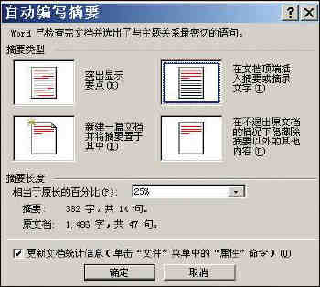 2.點擊“工具”菜單中的“自動編寫摘要”命令,會彈出如圖所示的對話框。
