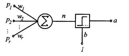神經元就是當h大于0時輸出1,h小于0時輸出0這么一個模型,它的實質就是把特征空間一切兩半,認為兩瓣分別屬兩個類。你恐怕再也想不到比這更簡單的分類器了,它是McCulloch和Pitts在1943年想出來了。這個模型有點像人腦中的神經元:從多個感受器接受電信號