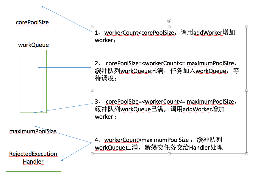 標(biāo)記6對應(yīng)第四種情況,addWorker的core傳入false,返回調(diào)用失敗,代表workerCount已經(jīng)超出maximumPoolSize,那就交給RejectedExecutionHandler處理。