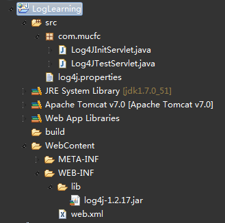 1.新建一個(gè)java工程,導(dǎo)入包log4j-1.2.17.jar,整個(gè)工程最終目錄如下