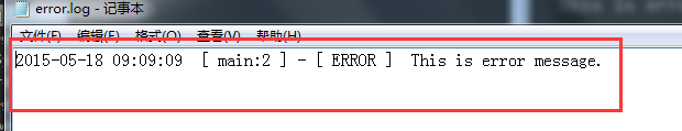 package com.mucfc;import org.apache.log4j.Logger;/** *@author linbingwen *@2015年5月18日9:14:21 */public class Test { private static Logger logger = Logger.getLogger(Test.class); /** * @param args */ public static void main(String[] args) { // System.out.println("This is println message."); // 記錄debug級(jí)別的信息 logger.debug("This is debug message."); // 記錄info級(jí)別的信息 logger.info("This is info message."); // 記錄error級(jí)別的信息 logger.error("This is error message."); } }4、輸出結(jié)果