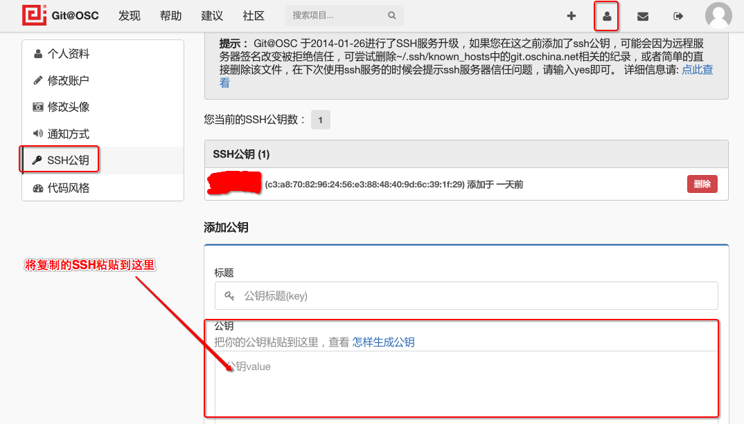 $ cat ~/.ssh/id_rsa.pub4.將公鑰內容復制并粘貼至